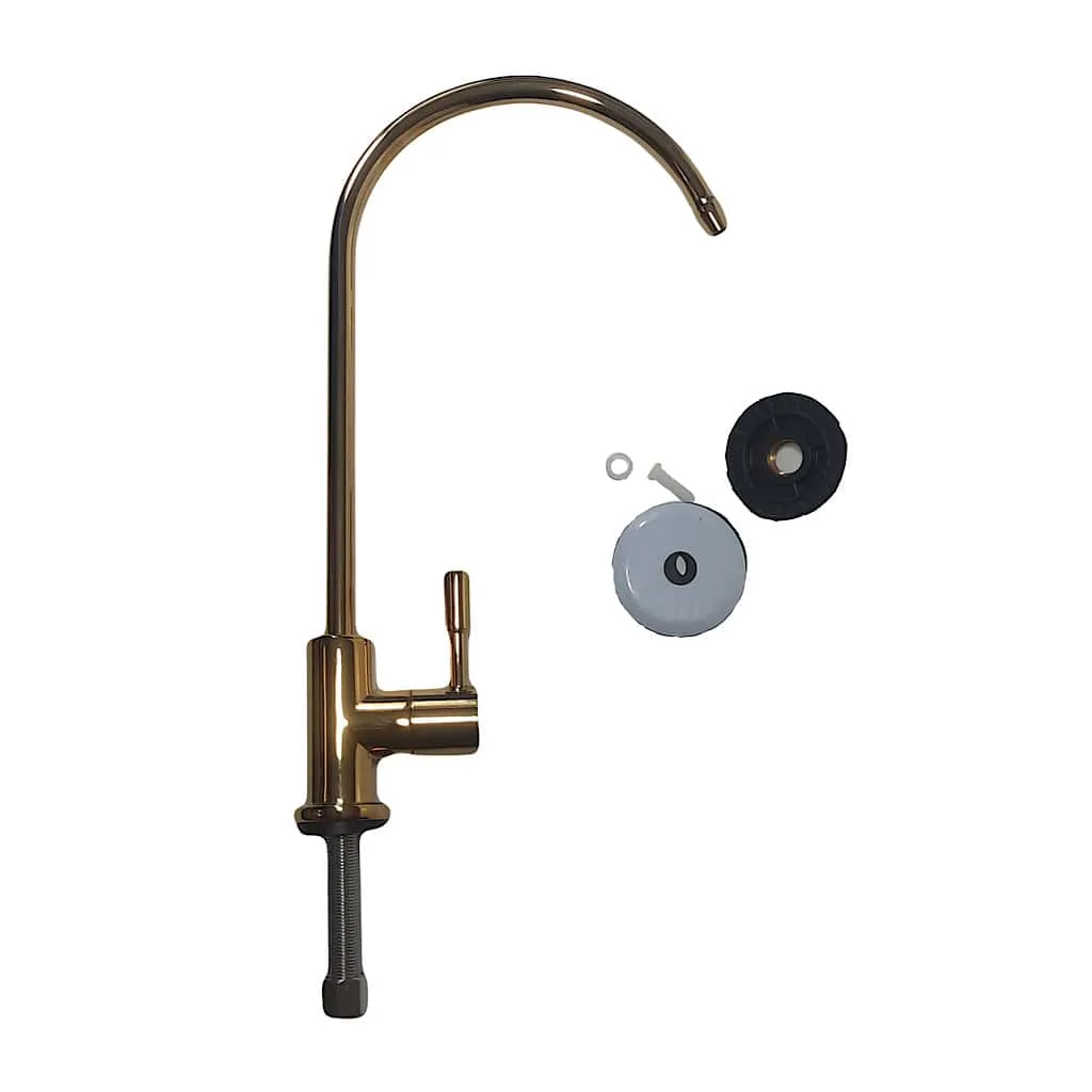 شیر برداشت تصفیه آب اهرمی طلایی با ارتفاع ۲۲ سانتیمتر، طراحی ظریف، کیفیت ساخت بالا و رنگ خاص، انتخابی ایدهآل برای فضاهای لوکس و آشپزخانههایی با دکور طلایی است.
